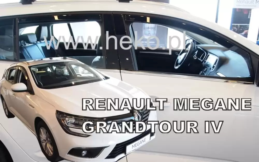Renault Megane IV fabricat din 2015. Deflectoarele de aer proiectat pentru Grandtour se potrivește perfect cu forma vehiculului și poate fi instalat cu ușurință fără nicio modificare a mașinii. Un spoiler din plastic transparent sau colorat nu protejează doar elementele estetice și murdăria, dar este și ușor de curățat. Zgomotul redus al vântului și fluxul de aer adecvat ajută șoferul să se concentreze asupra condusului, oferind în același timp pasagerilor un mediu mai plăcut în timpul călătoriei.