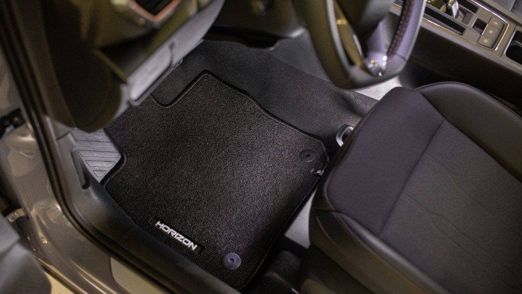Este realizat cu cusături de fir negru și fără broderie. Covorașul din partea șoferului a primit un design elegant și frumos.